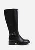 Stay stylish and comfortable all day with our Micah Stretch Wide Calf Knee High Boots with Buckle Detail. These boots are a perfect addition to your footwear collection, combining style and functionality for a chic look.Key Features: Effortless Style:The knee-high design and wedge heel of these boots ensure they make a statement wherever you go. They effortlessly elevate your outfit, adding a touch of sophistication and style. All-Day Comfort:Our boots are designed with your comfort in mind. The boots provides stability and support, while the elastic panel at the side allows for flexibility and a snug fit. You can wear them all day without sacrificing comfort. Secure Fit:The elastic panel at the side of the boots ensures a secure fit around your calves. This allows for easy on and off, while also providing a customized and comfortable fit. Durable Construction:Made with high-quality materials, our Knee High Boots are built to last. The sturdy sole and reliable stitching ensure durability, making them practical for everyday wear. Versatile and Practical:These boots are perfect for various occasions and can be easily paired with different outfits. Whether you're dressing up for a night out or dressing down for a casual day, these boots add a touch of elegance and versatility to your look. On-Trend Design:Featuring a sleek knee-high silhouette, these boots keep you in style. The elastic panel adds a modern and edgy element that sets them apart from regular knee-high boots. Specifications: Material: Faux Leather Colours: Available in multiple colours Closure: Side zipper Heel height: 2 inches Calf circumference: Adjustable with elastic panel Sizes available: Available in multiple sizes Invest in our Micah Stretch Wide Calf Knee High Boots with Buckle Detail for a perfect combination of style, comfort, and versatility. Enjoy the joy of effortless fashion and confident strides with every step you take. Get yours today and embrace the allure of knee-high boot fashion. Where's That Fromcrafts footwear with the utmost care with YOU in mind. Our in-house unique designs offer the latest trends with supreme luxury comfort and unparalleled quality. Looking for ideas on how to put together an outstanding look? Follow our social media accounts for daily inspiration!