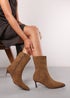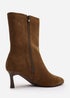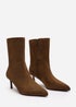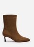Step into elegance with our Nyla Pointed Toe Ankle Heeled Boots. Designed for both style and comfort, these boots feature a sleek pointed toe and a slim mid-heel that offers just the right lift. The soft faux suede finish and inner lining keep your feet warm and supported. Perfect for workwear or evenings out, these boots are an easy slip-on with a secure side zip.