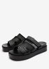 Where's That From Osana Black Flatform Sliders With Cutout Straps
