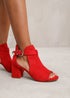 Where's That From Red Suede Zaneen Open Toe Block Heel