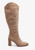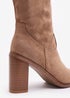 These black faux suede block heel knee high boots are the perfect blend of fashion and function for your autumn-winter wardrobe. With its pointed toe and block heel combining style and sophistication. A soft faux suede finish adds a touch of luxury complementing any Autumn outfit. Pair with your fave mini skirt or layer over leggings for everyday attire.