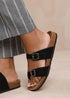 Where's That From Rio Black Nubuck Two Strap Buckle Sandals