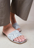 Where's That From Silver Metallic Blossom Single Band Flat Sandals