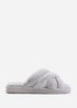 Where's That From Snuggle Grey Suede Cross Over Fluffy Slippers