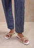 Where's That From Vermont White Pu Front Buckle Raffia Sliders