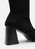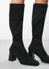 Where's That From Whitney Black Suede Stretch Calf Block Heel Boots