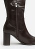 Where's That From Wide-Calf Hawthorn Brown PU Block Heel Boots