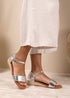 Where's That From Wide-Fit Metallic Silver Eleanor Low Wedge Shoes