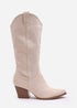 Where's That From Yasmine Beige Suede Western Cowboy Calf Boots