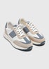 White and Blue Suede Panel Trainers
