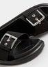 Yours Black Buckle Strap Mule Sandals In Wide E Fit