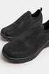 Yours Black Diamante Knitted Slip On Trainers In Extra Wide EEE Fit