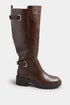 Yours Brown Faux Leather Buckle Detail Knee High Boots In Standard Fit