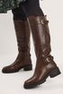 • Yours Brown Faux Leather Buckle Detail Knee High Boots In Standard Fit