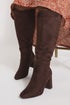 Yours Chocolate Brown Faux Suede Heeled Knee High Boot In Extra Wide EEE Fit