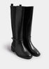 Yours Curve Black Faux Leather Buckle Knee High Riding Boots In Extra Wide Fit