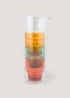 Enjoy a refresh outdoors this summer with this charming set. A tall clear pitcher pairs up with four colourful and stackable tumblers to make sure you have everything you need for a chill in the garden. Made of PS, the set provides easy storage, making it a practical addition to your collection, too. Dimensions: 11cm x 15cm x 28cm.