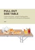 Create the perfect dining spot for camping trips, picnics, festivals and any other outdoor occasion with this handy table by Outsunny. Foldable indesign for easy portability, its adjustable to two different heights and features an aluminium frame with four legs making it lightweight and reliable. The main tabletop is covered with an oak-coloured MDF top for easy maintenance, while a small pull-out side table provides extra holding and dining room if required. This table folds into itself no carry bag case required. Flat pack easy to assemble. Dimensions: Large table L 90cm x W 60cm x H 40/70cm. Side table: L 49.5cm x W 33cm. Folding size: L 60cm x W 8cm x H 47cm. Weight capacity: 30kg (overall), 2.5kg (side table). Net weight: 4.2kg.
