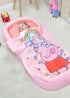 Our officially licensed Peppa Pig My First ReadyBed is perfect for children aged 18 months and up, and features Peppa Pig in her red dress surrounded by stars and a rainbow on a gingham pink background. The bed has a pink top to the inflatable mattress with pink sides and safety bumper. The My First ReadyBed is quick and easy to set up, simply fold out from the carry case and inflate the mattress using the included foot pump and the bed is ready in minutes! The ReadyBed has everything your child needs for a good night sleep, with the inflatable mattress and pillow offering support and comfort, the attached cover keeping them warm, and inflatable supports on the sides of the bed to keep young children secure and safe. The My First ReadyBed is perfect for sleepovers or short trips, camping or travelling, it’s light, compact, and easy to set-up.