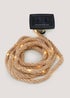 Learn moreElevate any outdoor areas this spring/summer with this handy rope light! Designed in a timeless tan shade, the 5m rope features 50 warm LED lights within a silver wire for a touch of luxury. Crafted with a 1m clear cable for discreet finish it includes a battery box with a timer for added practicality.