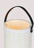 Learn moreInstantly elevate your outdoor living space with this charming ceramic lantern. Styled in white with a contrasting black leather handle, the small-sized lantern features an intricate machine carved texture. This creates interesting beams of light when illuminated with a candle (not included). Variation sizes are also available in the range. Dimensions: 10cm x 9cm x 12cm.
