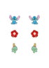 Learn moreThis Official Disney Lilo and Stitch pack of 3 earrings is the perfect gift for any Disney fan! Featuring a pair of red flower studs, Stitch himself and Stitch's bear Scrump. Packaged in official Disney packaging.
