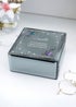 The trinket box can be personalised with a name up to 12 characters and 3 lines of text, with up to 25 characters per line.