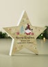 Bring joy and whimsical charm to your Christmas season with our Personalised Gonk Christmas Wooden Star Ornament.