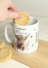 Personalise it with two lines of text on the front and additional two lines on the side of the mug, as below