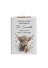 Add a unique touch to the rustic Highland Cow design with a personalised message over 5 lines, each containing up to 20 characters.
