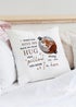 Personalise with your chosen photo which is surrounded by the fixed text 'WHEN YOU MISS ME, HAVE NO FEAR, HUG THIS PILLOW AND KNOW I'M HERE