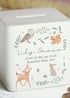 This Personalised Woodland Animals Square Money Box makes the perfect keepsake for that special occasion.