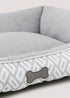 Learn morePerfect for adorable pooches, this comfy pet bed is designed for a snuggly snooze. Styled with a patterned grey exterior and a darker grey, cushioned interior, the inside of the pet bed is crafted from a fleecy fabric for a soft and cosy finish. What's more, the dog bone detail is sure to make anyone smile. Suitable for small-medium breeds. Dimensions: 55cm x 35cm x 15cm.