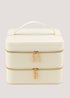Learn moreKeep your makeup, skincare, jewelry and more organised in this handy beauty case. Created with classic cream material, it comes complete with two layers for a practical amount of storage space, plus luxurious gold zip fastenings and a carry handle.