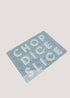 Learn moreProtect your worktop with the help of this stylish and charming piece. Constructed with sleek glass and featuring an eye-catching mix of blue and white, this worktop saver comes complete with a playfully spotty pattern to the background, along with 'Chop', 'Slice' and 'Dice' slogans. Part of the Loft trend. Dimensions~: H39.5cm x W30cm.