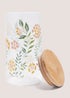 folk floral glass jar medium, wooden lid and printed decal on container.