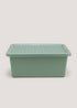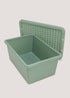 Learn moreKeep clothing and home accessories neatly stored away with this handy storage box. Crafted from durable green plastic with a rattan-effect lid, it's the ideal way to get clutter under control.