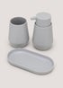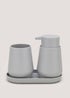 Keep your bathroom sleek yet chic with this basin set. Styled in a timeless grey tone, it features a soap dispenser, a cup and a sturdy tray for smaller essentials. Crafted with a durable material, it's an essential in your bathroom.