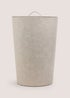 • Grey Faux Leather Round Laundry Basket