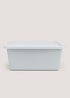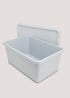 Learn moreKeep clothing and home accessories neatly stored away with this handy storage box. Crafted from durable grey plastic with a rattan-effect lid, it's the ideal way to get clutter under control. Capacity: 45 Litres.