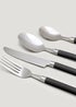 Learn moreReplenish your kitchen drawer with this classic 16-piece set of cutlery. Featuring 4 knives, 4 spoons, 4 teaspoons and 4 forks, this set is made with luxurious silver metal, together with black plastic handles for a sleek finish. Perfect for covering your mealtimes. * Knife Dimensions: W2cm x H21cm * Spoon Dimensions: W4cm x H19cm * Teaspoon Dimensions: W3cm x H16.5cm * Fork Dimensions: W2.5cm x H20cm