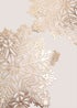 Add a touch of seasonal sparkle to your table with this 2 Pack of Gold Snowflake Celestial Placemats. Featuring a delicate snowflake cut-out design in a shimmering gold finish, these placemats bring instant festive charm to your dining setup, perfect for Christmas dinners, winter gatherings, or holiday decorating.
