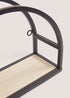 Unique shelves with a metal frame arching over it. This shelf brings a modern vibe to your space, providing the perfect display for your treasures. It's ideal for showcasing your unique collectibles, favourite knick-knacks, or anything in between. Because you want your treasures to stand out proudly. Dimensions: 30cm x 30cm x 21.5cm.