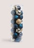 You'll be rocking around the Christmas tree with this regal multipack of 30 baubles. In a traditionally festive mix of blue, gold and silver, each bauble comes complete with thin string so they can easily be attached to your display. The perfect starter pack for a medium-sized tree. Part of the Lux range. Pack dimensions: 17cm x 17cm x 19cm.
