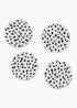 These black and white printed coasters add a subtle touch of fun to any table setting or side table. Fashioned from sturdy cork, they're durable and will protect your surfaces from scratch marks. Match them with our round dalmatian place mats for ultimate impact. Diameter: 10cm