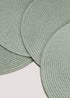Finish your table setting with this four pack of woven placemats in iceberg green. Wipe clean with a damp cloth. Not microwaveable.