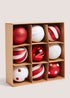 Learn moreBeautifully decorate your tree with this pack of 9 Christmas baubles, all finished in eye-catching red and white with thin string for ease of hanging. The perfect starter pack for brightening up your tree. Part of the Candy Cane Lane range. Pack dimensions: 31cm x 31cm x 11cm.