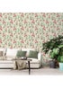 Inspired by the delicate beauty of nature, our Pomegranate Trail Wallpaper features hand-painted watercolour pomegranates, trailing vines, and lush green leaves cascading down a soft cream background. The flowing, vertical design draws the eye upwards, making it perfect for creating the illusion of height in a space. Whether styled with rustic wood tones or classic furnishings, this wallpaper offers a refined yet inviting look that works beautifully in kitchens, dining rooms, or feature walls in cosy living spaces.