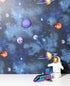 Learn moreMake your escape with a wallpaper design that's out of this world. With a lustrous tonal background, scattered all over with glitter, you can be sure of instant wow-factor, giving your space a new dimension. It's a wallpaper for adventures and imagination without limits. With a bold navy background for statement style, and pops of colour from planets, this is a striking paper that's equally at home on a feature wall, ceiling or throughout a bedroom or playroom. Hanging Method: Paste the Paper Pattern Match: Off Set 26.5cm Pattern Repeat: 53cm