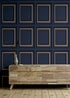 Create an elegant look to your walls with this stylish stately panel. The realistic panel design features ornate beveled edges in a beautiful dark navy tone with clever shading and detailing to give a vintage effect that looks 3D, with an added detail of a gold metallic inlay for a distinctive finish to the wallpaper design. Hanging Method: Paste the Paper Pattern Match: Straight Match Pattern Repeat: 53cm